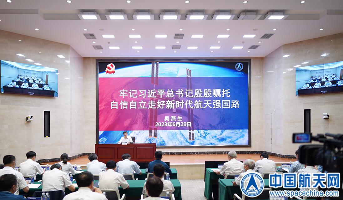 为进一步学习领会、贯彻落实习近平新时代中国特色社会主义思想和习近平总书记关于航天强国建设的殷殷嘱托,全面系统总结新时代航天科技发展成就和实践启示,以高度的战略清醒直面新形势新任务新挑战新机遇,继续全面深入推进主题教育走深走实、见行见效,始终不渝把习近平新时代中国特色社会主义思想转化为坚定理想、锤炼党性和指导实践、推动工作的强大力量,6月29日,中国航天科技集团有限公司党组书记、董事长吴燕生以《牢记习近平总书记殷殷嘱托 自信自立走好新时代航天强国路》为题讲授专题党课。