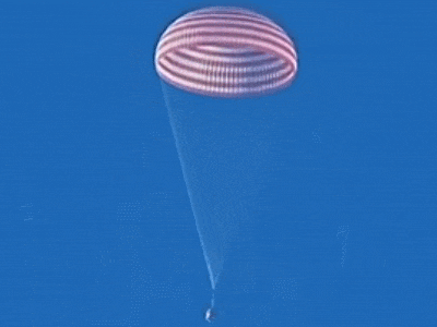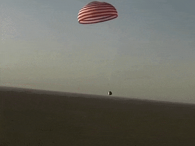 之后,飞船返回制动发动机点火,返回舱与推进舱分离,返回舱成功着陆,搜救分队及时发现目标并抵达着陆现场。